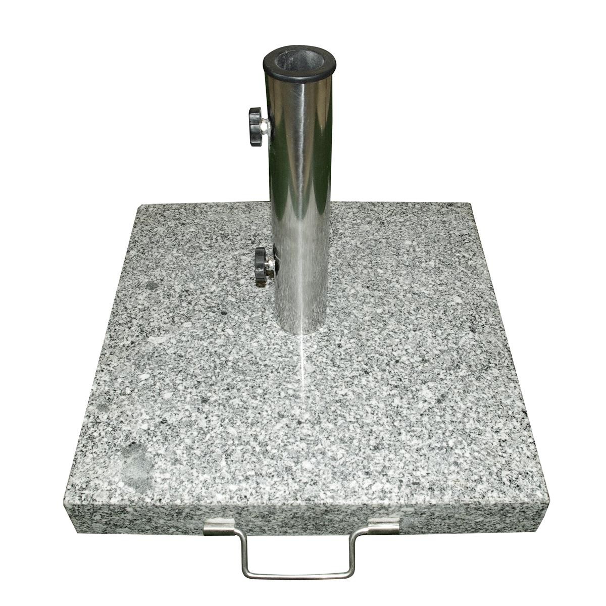 Sonnenschirmständer 25 kg Granit poliert grau eckig Edelstahl 45 cm Griff Rollen